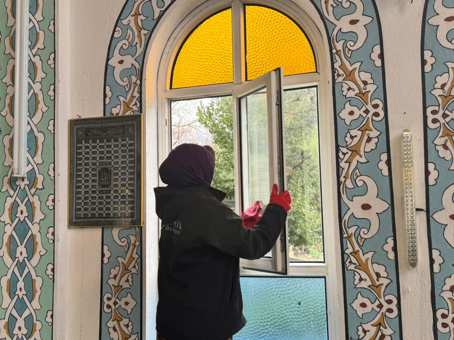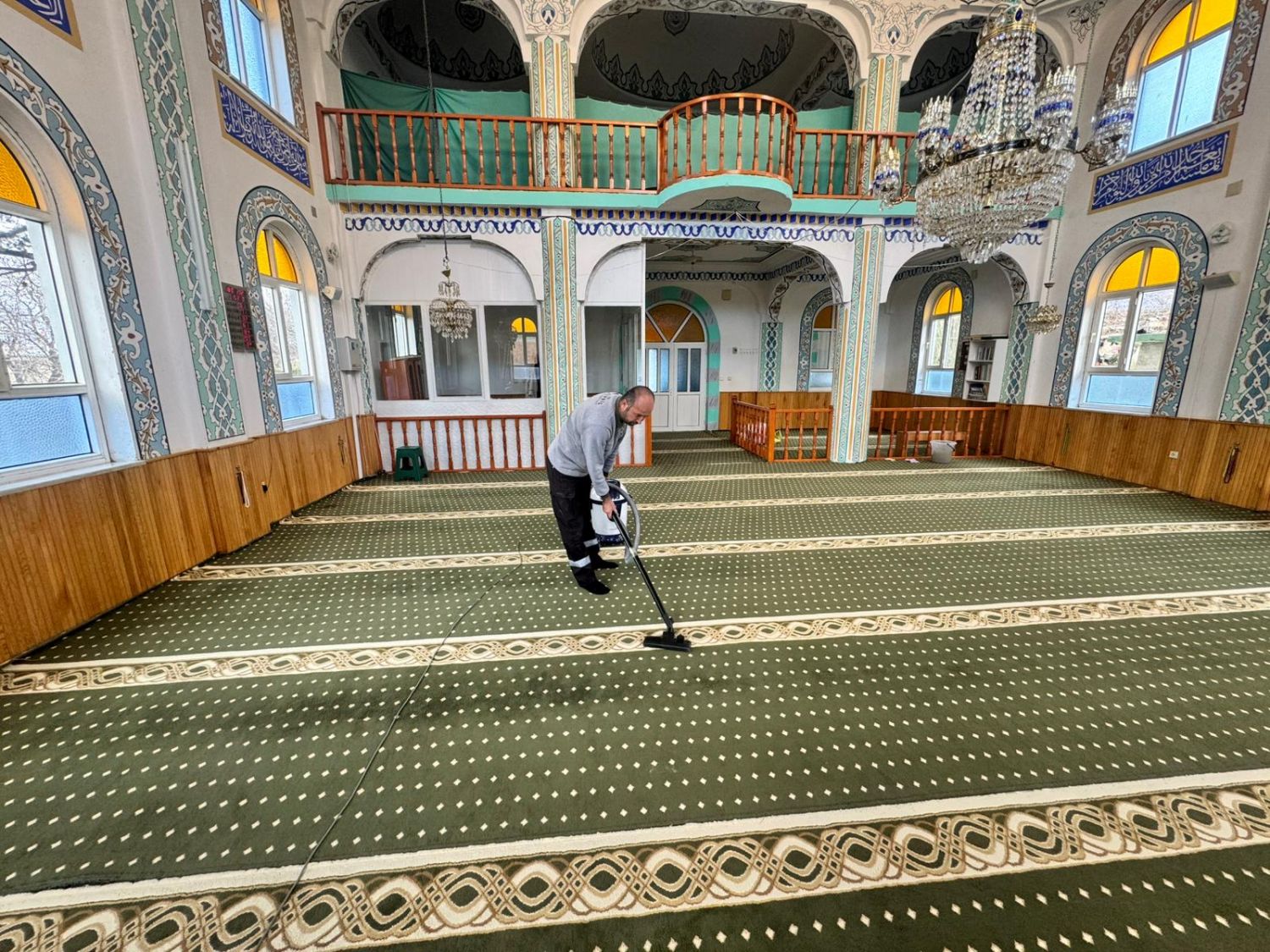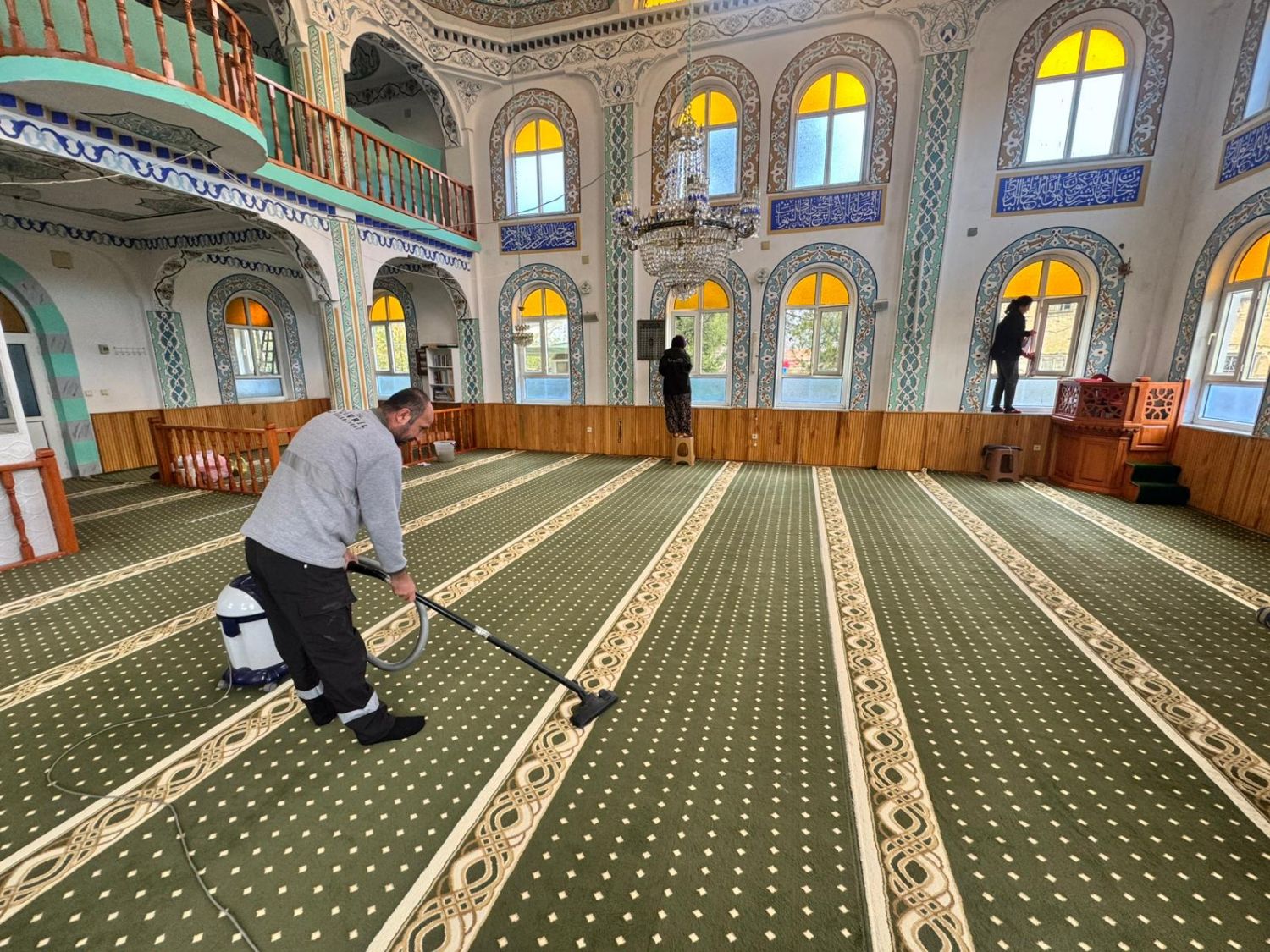 Çivril Belediyesi ekiplerince gerçekleştirilen çalışmalar kapsamında camilerin iç mekanları detaylı bir şekilde temizlenip ortak kullanım alanlarında hijyen uygulamaları titizlikle yapılıyor.