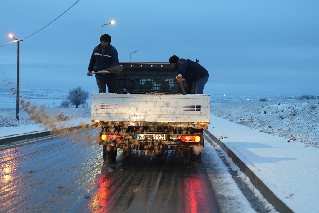 İlçede etkisini artıran kar yağışı, yüksek kesimlerin yanı sıra ilçe merkezini de beyaza bürüdü. Kar yağışının ardından Çivril Belediyesi ekipleri, sabahın ilk ışıklarıyla birlikte sahaya inerek karla mücadele çalışmalarını başlattı. Özellikle ilçenin yüksek kesimlerinden biri olan TOKİ Konutları bölgesi ile Karabedirler Yolu’nda yoğun şekilde tuzlama ve kar küreme çalışmaları gerçekleştirildi. Vatandaşların günlük yaşamının olumsuz etkilenmemesi adına çalışmaların hava koşullarına bağlı olarak devam edeceğini belirten Çivril Belediye Başkanı Semih Dere; “ İlçemizde etkili olan kar yağışıyla birlikte, hemşehrilerimizin günlük yaşamının aksamaması ve ulaşımın güvenli şekilde sağlanması için sahadayız. Kentimizin dört bir yanında kar yağışına karşı ekiplerimiz tuzlama ve yol açma çalışmalarını aralıksız sürdürüyor. Tüm sürücülerimizden ve hemşehrilerimizden , kış şartlarına uygun tedbir almalarını ve dikkatli olmalarını önemle rica ediyoruz. Kar yağışının ilçemize bereket getirmesini diliyorum.” dedi.
