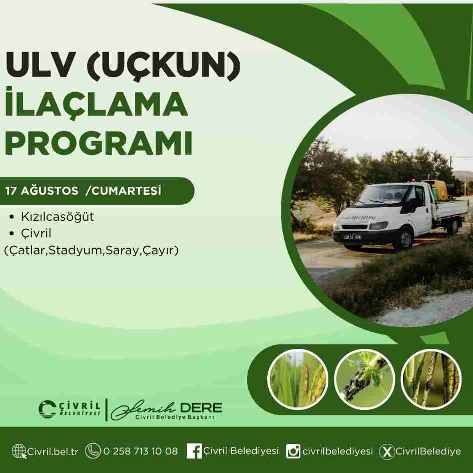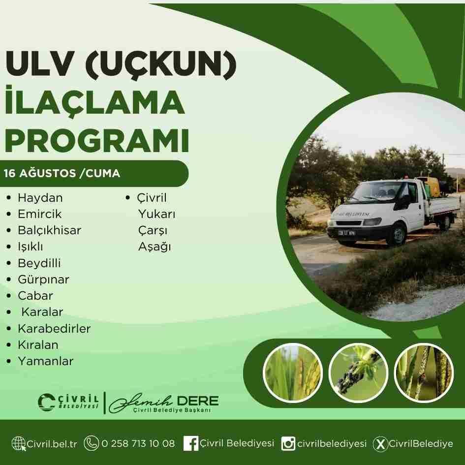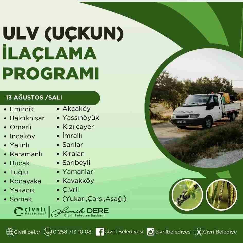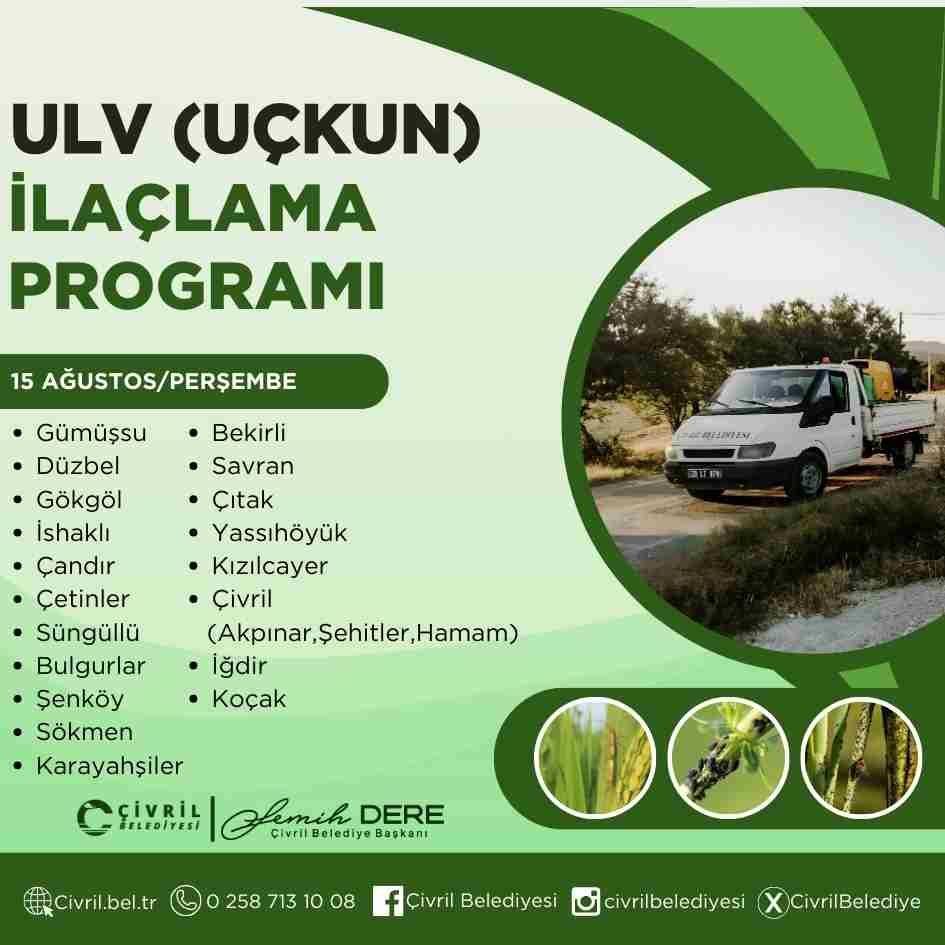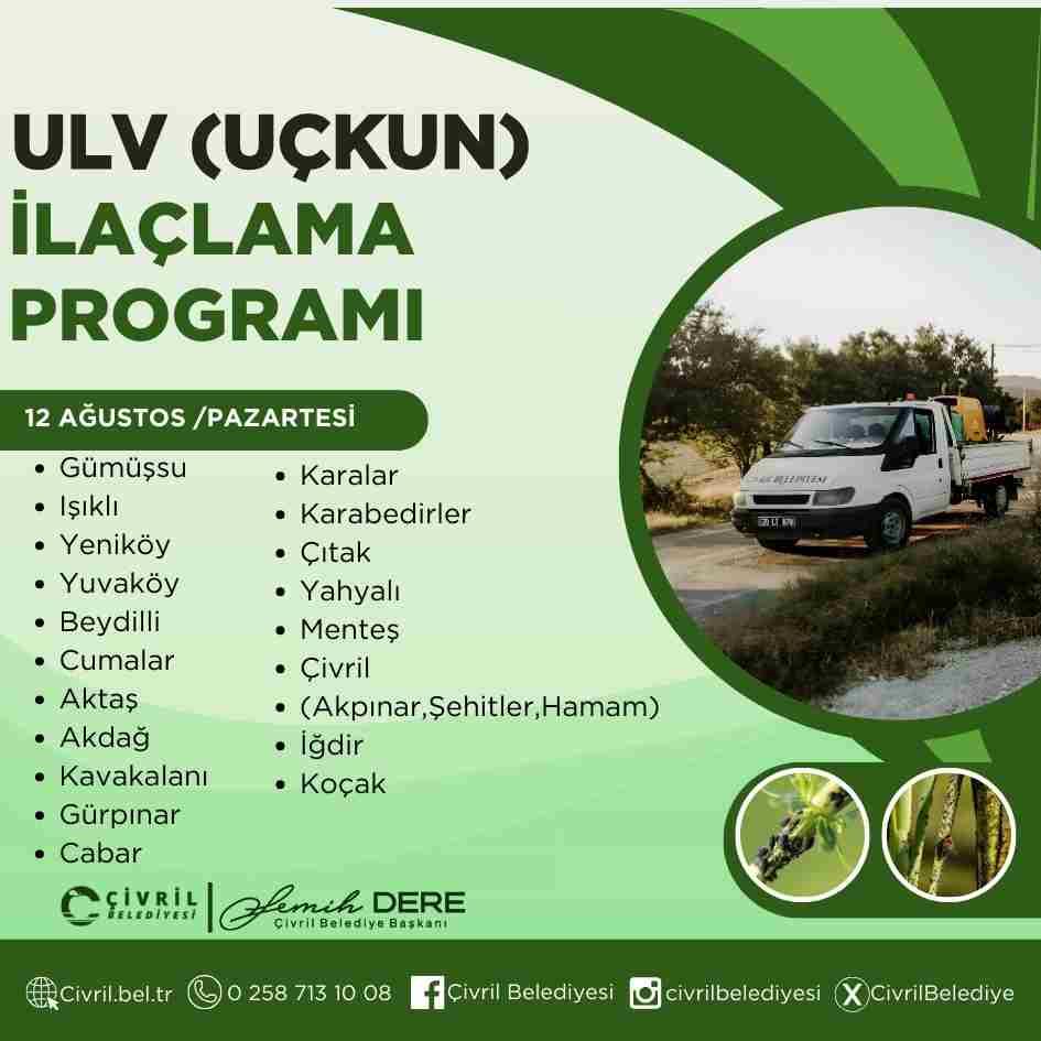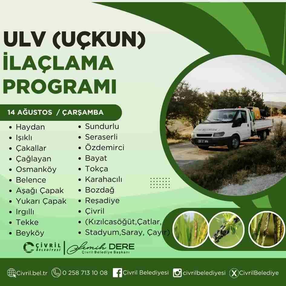 ÇİVRİL BELEDİYESİ ULV (UÇKUN) İLAÇLAMA PROGRAMI(12-19 AĞUSTOS TARİHLERİ ARASI )