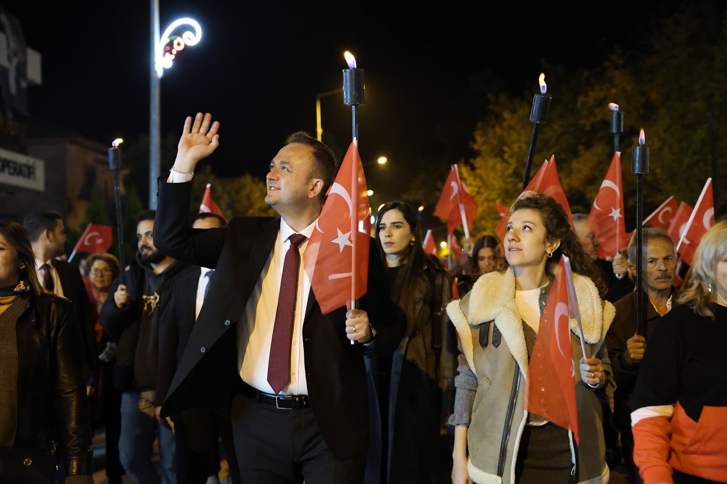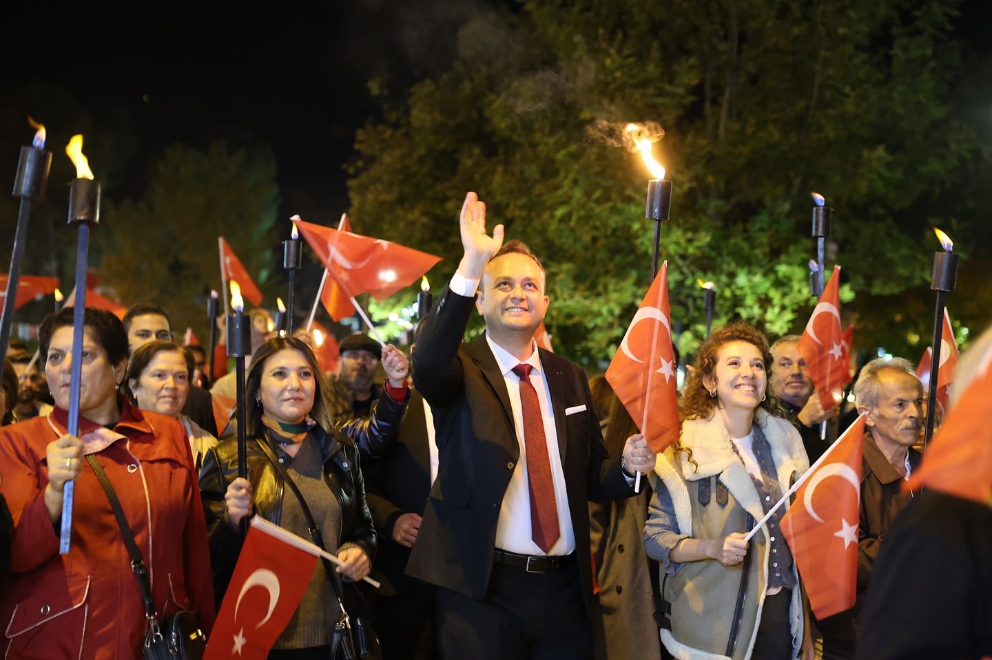 Cumhuriyet Meydanı’nda toplanan vatandaşlar, ellerinde Türk bayrakları ve meşalelerle bando eşliğinde yürüyüş yaptı. Programa Çivril Belediye Başkanı Semih Dere, ilçe protokolü ve çok sayıda vatandaş katıldı. Cumhuriyet Meydanı’ndan başlayan yürüyüş, aynı noktada son buldu.