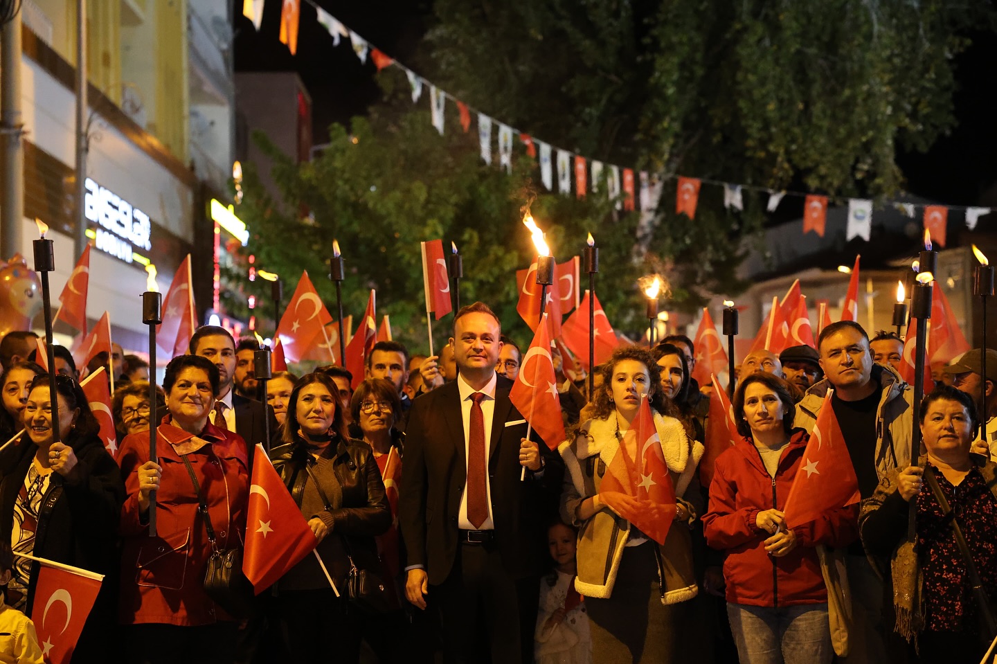 Cumhuriyetin 102. yılı Çivril’de düzenlenen fener alayı yürüyüşü ve konserle kutlandı.