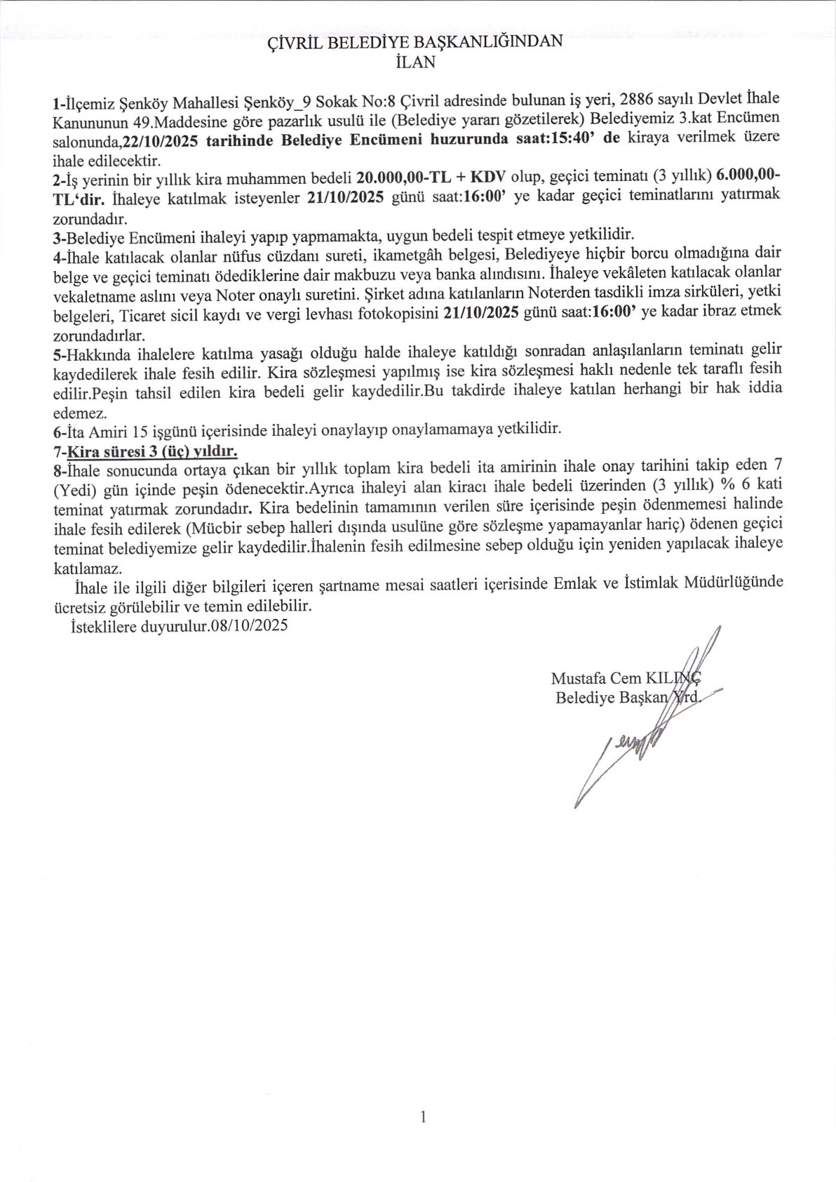 ŞENKÖY MAH. ŞENKÖY_9 SOKAK NO:8 İŞYERİ 49. MADDE KİRA İHALESİ