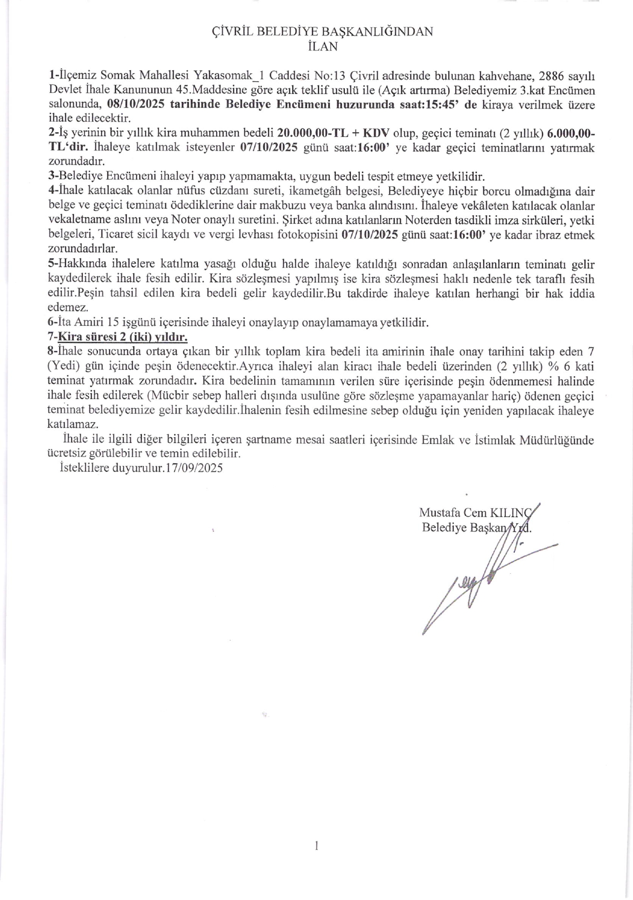 SOMAK MAH. YAKASOMAK-1 CAD. NO:13 KAHVEHANE KİRA İHALESİ