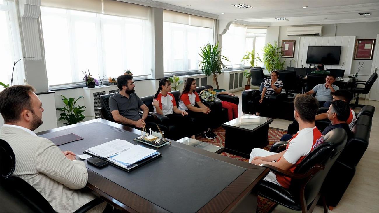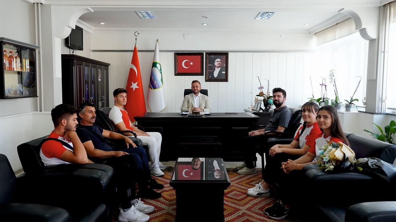 Moldova’da düzenlenen Dünya Bilek Güreşi Şampiyonasında farklı kilolarda dereceye giren Yeşil Çivril Belediye Spor Bilek Güreşi Kulübü sporcularını Çivril Belediye Başkanı Semih Dere makamında ağırladı.